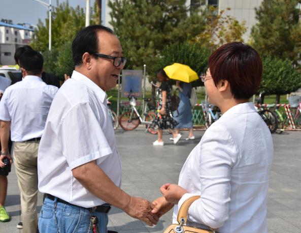 观摩调研。来自中山大学、北京师范大学、南开大学等20余所高校的关工委老师在学校党委副书记赵利宁、校关工委主任赵维素及相关领导的陪同下走进贺兰山校区文荟楼,观摩政法英式21点