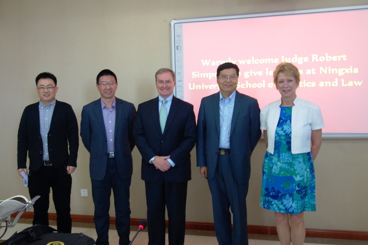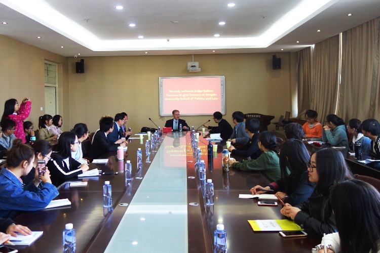 于4月21日上午在贺兰山校区文科楼二楼会议室成功举办了题为《美国法律环境》专题讲座。本次讲座特别邀请了美国宾夕法尼亚州罗伯特•辛普森法官担任主讲,讲座由戴新毅教授主持,英式21点