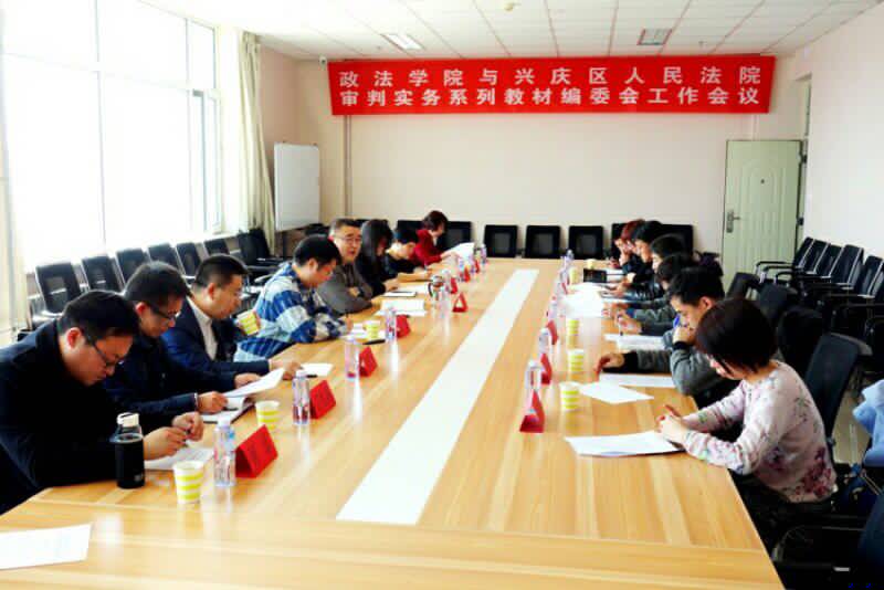 与兴庆区人民法院的编委会成员就教材的编写体例、结构等问题进行了充分的交流。编委会成员一致认为法学实践教学应以提升学生的法律思维与应用能力为主线,审判实务系列教材的出版将会为我区法学创新人才培养模式做出有益的尝试。