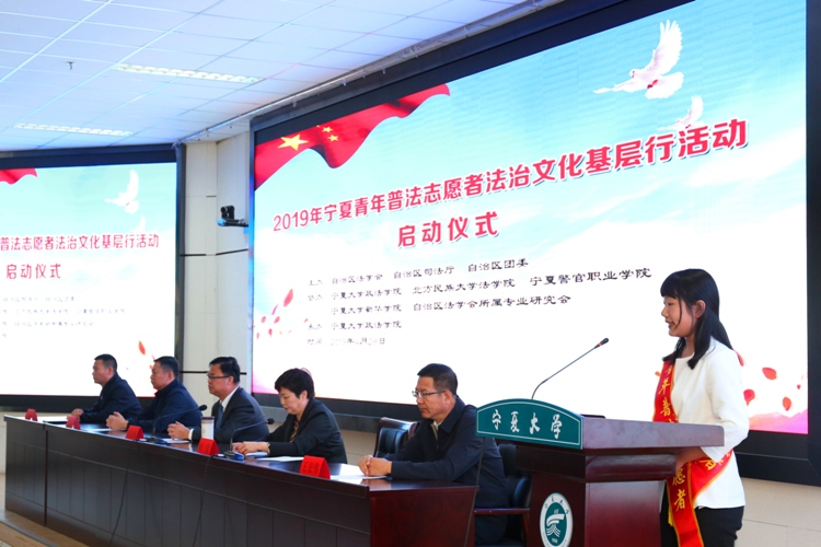 据悉,按照中国法学会、司法部、团中央的统一部署,经自治区党委分管领导同意,今天,宁夏与全国各省、自治区、直辖市同步启动2019年青年普法志愿者法治文化基层行活动。