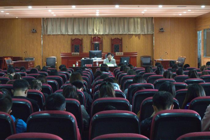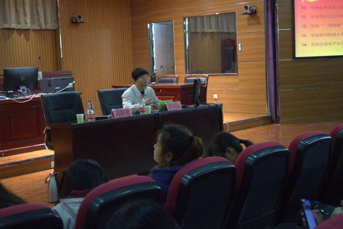 关工委五老报告团成员陆美石老师,于贺兰山校区文荟楼模拟法庭,为同学们深刻解读了习近平新时代中国特色社会主义思想。讲座由政英式21点