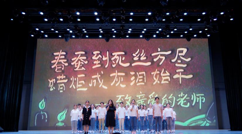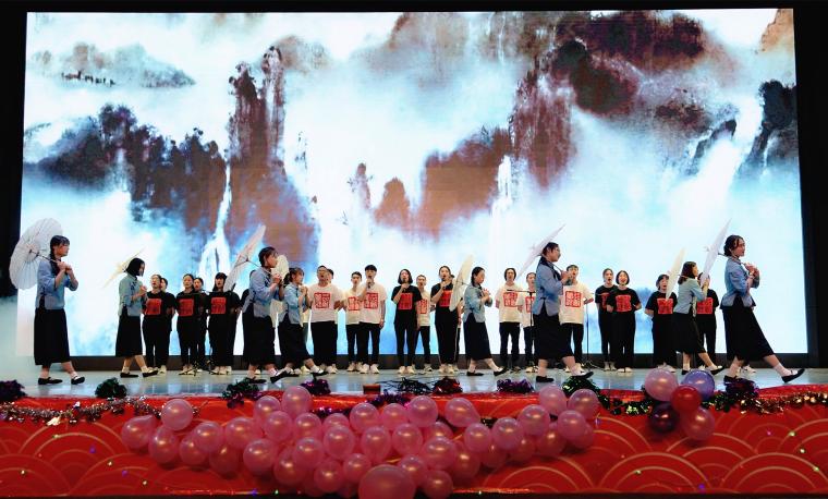 潘瑞、胡世恩、潘素洁等老师带来的快闪《我和我的祖国》,用深情地演唱讴歌祖国发展巨变,献礼新中国成立七十周年,将气氛推向高潮,老师们满怀热情的歌声萦绕在活动中心现场,全场掌声雷动。最后,晚会在合唱《你好,再见》中缓缓落幕。