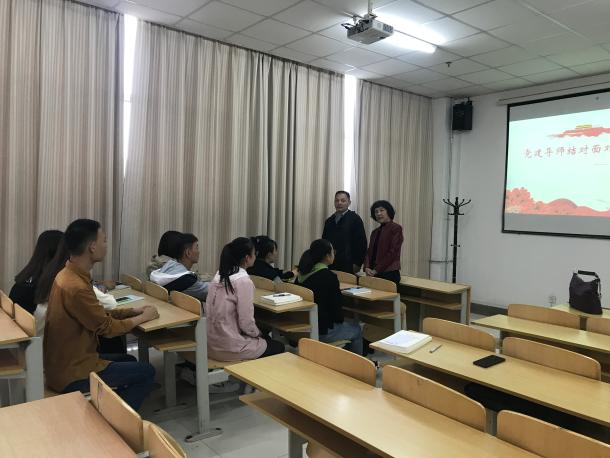 10月9日,思想政治教育与哲学系开展党建导师制师生见面活动,系教工党支部潘素洁、马拥军、胡滨、马惠萍、贾学锋、万忠德、吕耀军、尹强、丁颖、倪富静、赵南宁等教师党员和系主任林冬子分别在文荟楼203、 207、 209、 210四个教室与自己所联系的党员学生和2019级新生相互见面,就如何充实度过大学生活进行了深入交流。