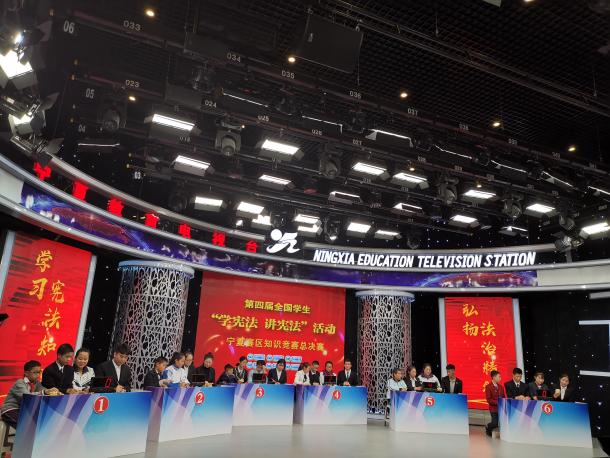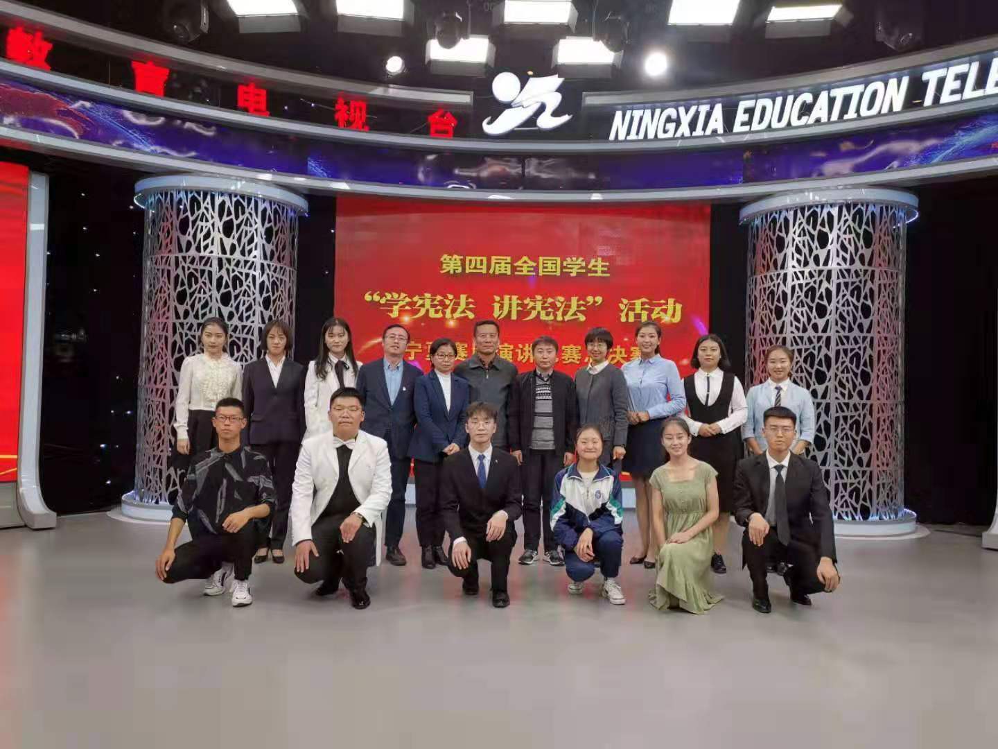 2019年10月24日至25日,第四届全国学生“学宪法 讲宪法”宁夏赛区决赛在宁夏教育电视台举行。大赛分为知识竞赛和演讲比赛两部分,英式21点2018级法学专业李后龙同学和郭雨蒙同学代表英式21点