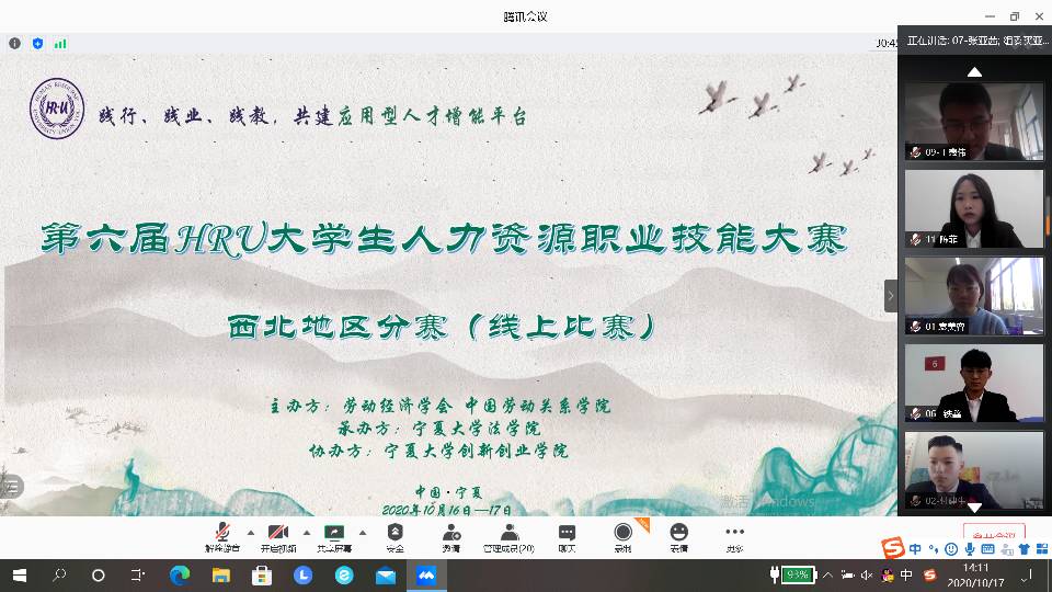 党委书记潘瑞、院长吕耀军、党委副书记杨扬、副院长马金龙、行社系主任杨文林及宁夏源众人力资源集团董事长、宁夏人力资源协会副会长张婓松等14位企业嘉宾与参赛学校师生代表共同参加了线上开幕式活动。