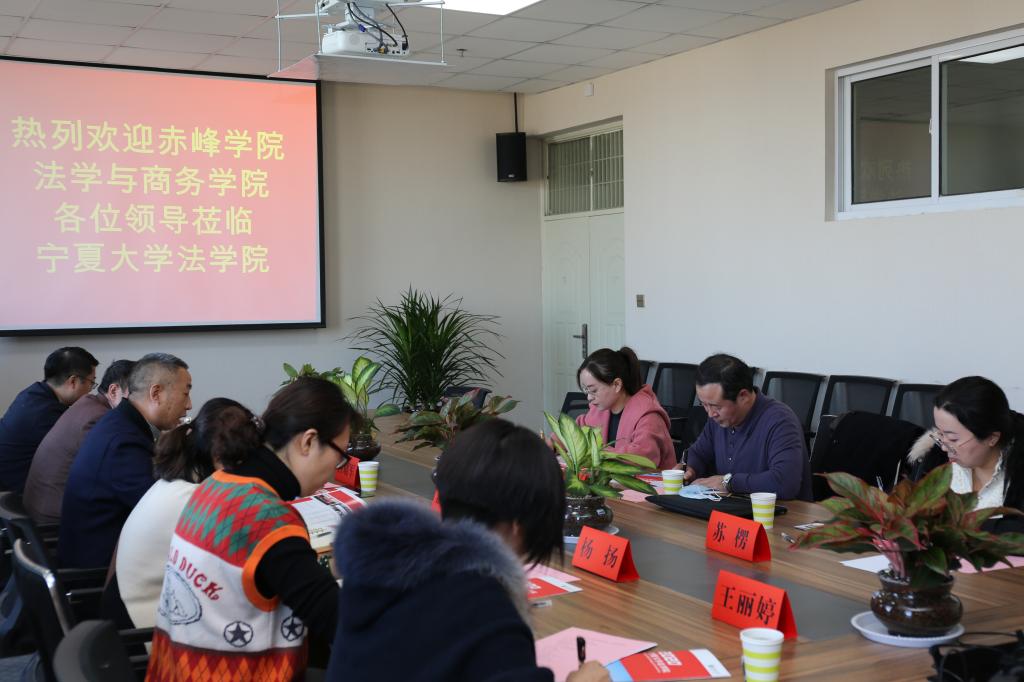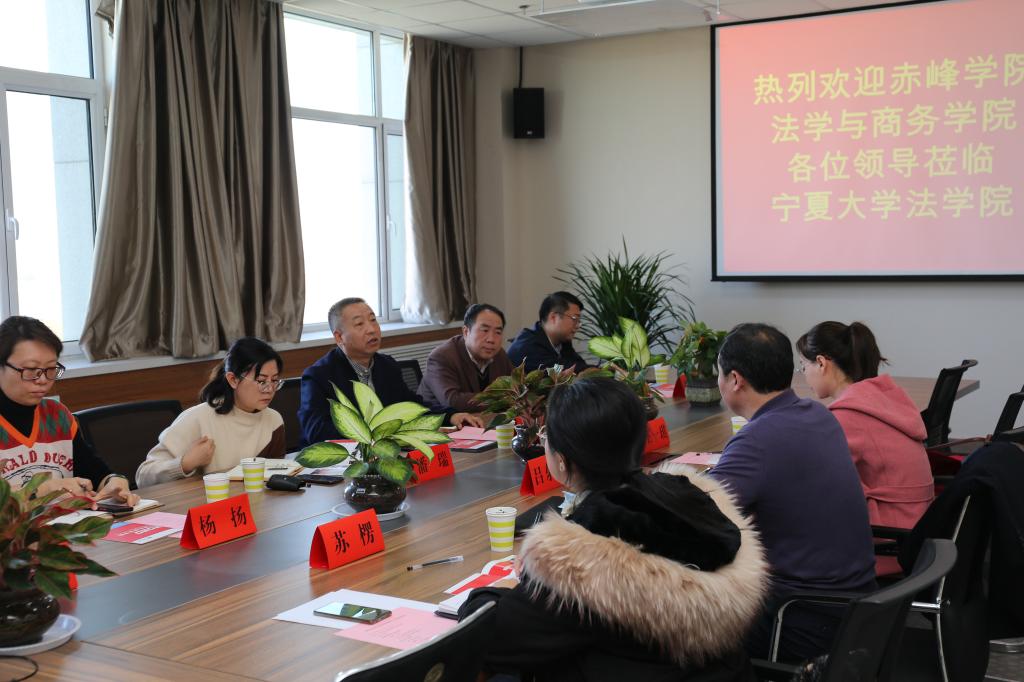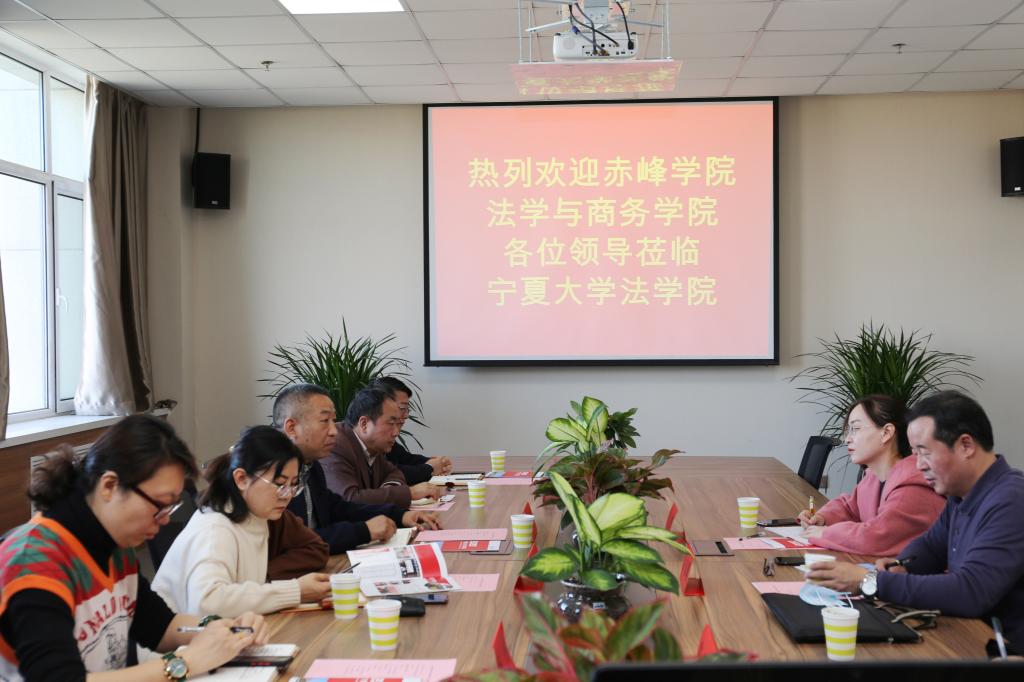 11月6日上午,赤峰学院法学与商务学院院长吕东明、民商法法学教研室主任王一琪、刑法程序法学教研室苏楞一行3人来院调研座谈。英式21点 党委书记潘瑞、院长吕耀军、党委副书记杨扬、法律系主任张弛、法理学硕士点负责人张驰、法律实践教学中心副主任王丽婷参加座谈会。双方就专业建设、人才培养等方面进行了深入交流。