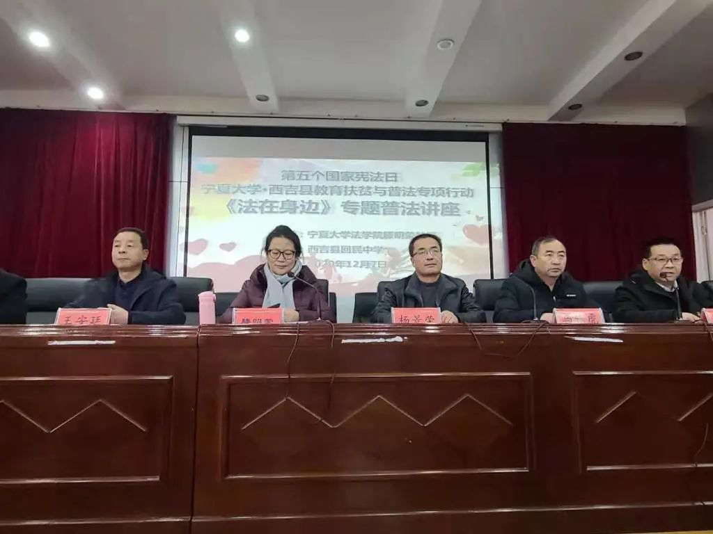 师生宣讲团队分别在西吉中学、西吉职业中学、西吉回民中学同时开展普法宣教进校园活动,以“弘扬宪法精神、推进依法治国”为主题,围绕《民法典大讲堂》、《法在身边》专题普法讲座、大学生法治辩论赛、“以案说法·法治护航”主题班会等丰富多彩的形式展开,共辐射一万三千名西吉师生。