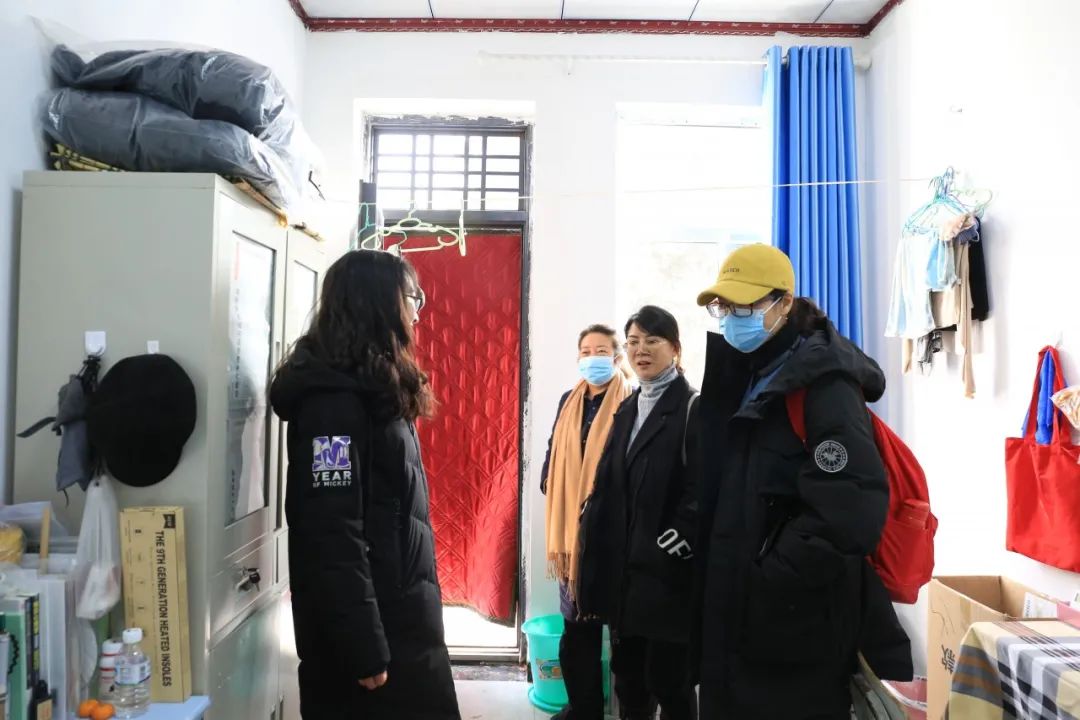 师生一行参观校舍,初步了解支教学校的生活状况。随后,师生一行与支教团的同学们进行座谈,并为他们赠送了慰问品。