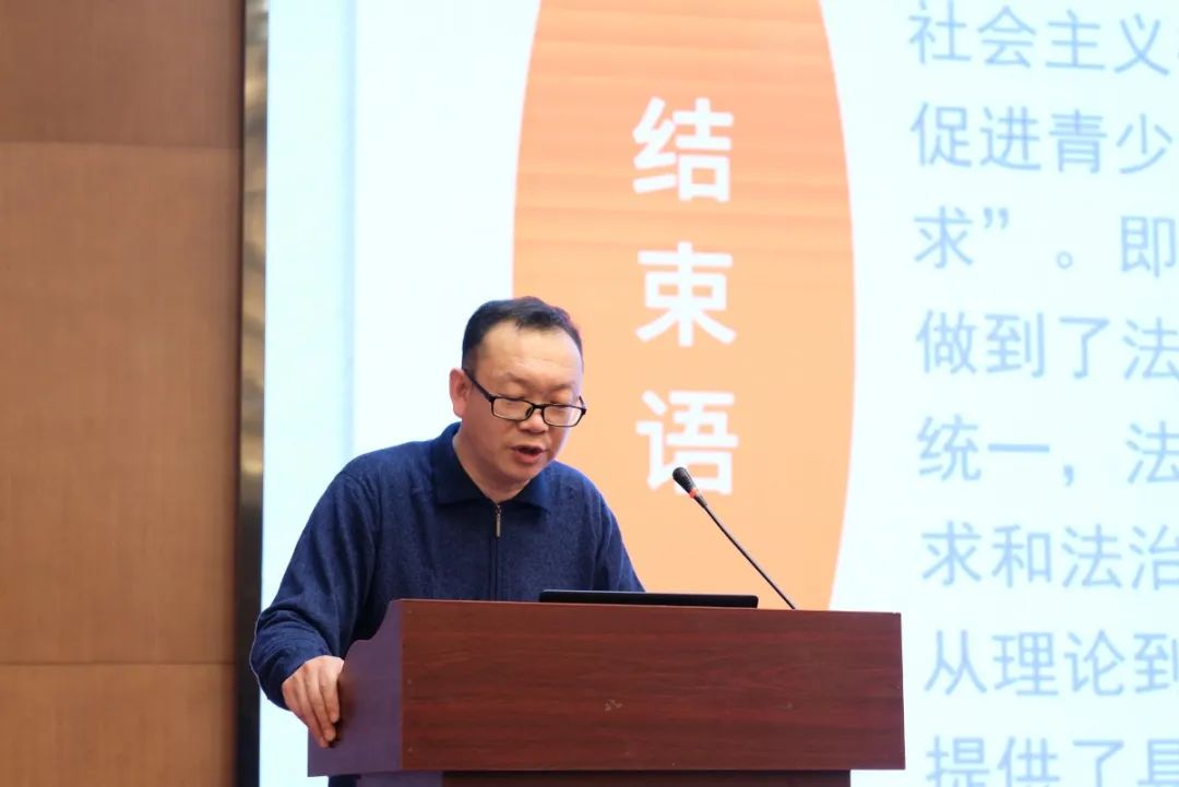 法学学科负责人戴新毅教授带来“以习近平法治思想为引领全面扎实推进青少年《民法典》教育”主题讲座。深刻解读习近平法治思想的核心要义,介绍我国民法典编纂的背景、思路和意义,扎实推进青少年民法典教育的重要意义和实践途径。