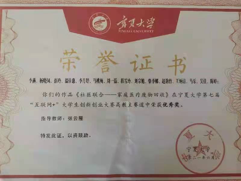 其次,带领学生参加多种实践活动,将所学的环保法知识活学活用。带领学生参加环保公益活动:参加垃圾分类志愿者活动、环境法宣传、保护黄河等公益活动;辅导十几名学生参加环境保护方面的大创项目、互联网+项目,通过项目加深生态文明建设理论的学习和运用。其中学生李燕主持的《社医联合--家庭医疗废物回收》获得英式21点