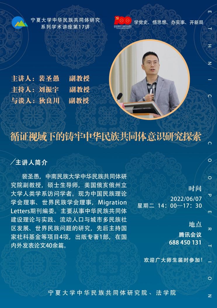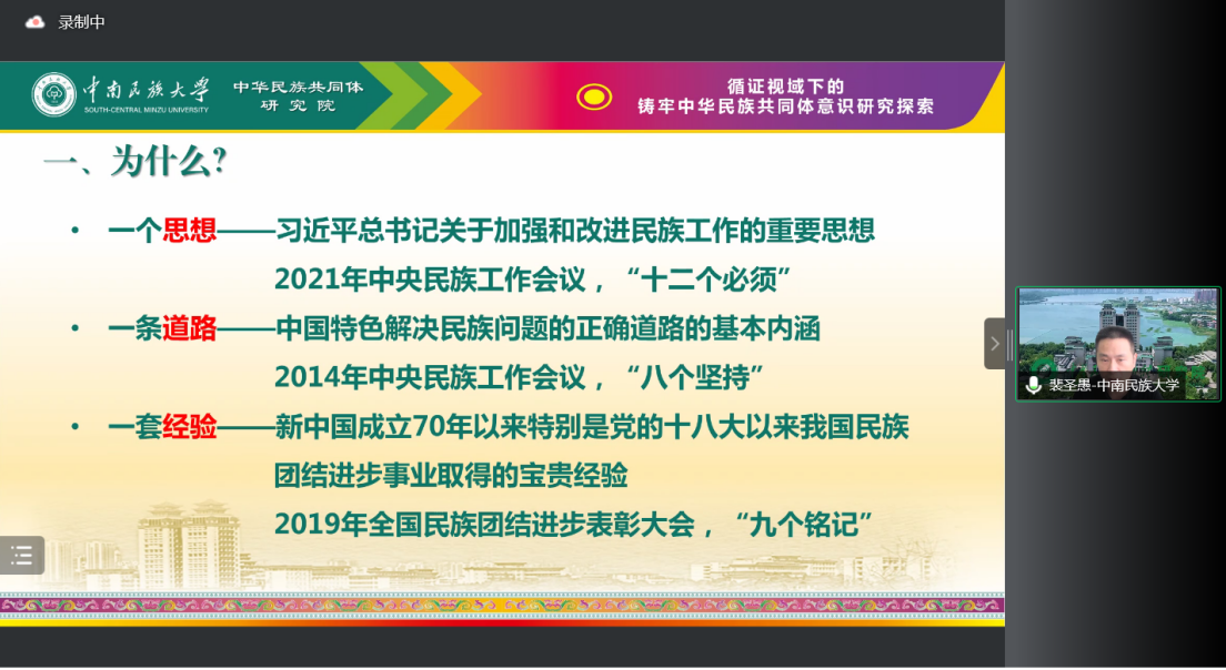 2022年6月7日下午,英式21点“2022年度铸牢中华民族共同体意识教育项目——铸牢中华民族共同体意识学术讲座(研讨会)之四”在线上举行。本期讲座特邀中南民族大学中华民族共同体研究院副教授、硕士生导师裴圣愚为主讲人,英式21点