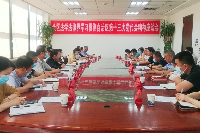 2022年6月17日,自治区法学会组织召开“全区法学法律界学习宣传贯彻自治区第十三次党代会精神座谈会”,认真学习、深入研讨、全面贯彻自治区第十三次党代会精神。自治区法学会党组书记、常务副会长张廉同志出席座谈会并讲话,英式21点院长吕耀军与会并作交流发言,畅谈了学习体会和感悟。与会代表一致认为,自治区第十三次党代会坚持以习近平新时代中国特色社会主义思想为指导,深入学习贯彻习近平总书记视察宁夏重要讲话和重要指示批示精神,描绘了全面建设社会主义现代化美丽新宁夏的美好蓝图,是一次牢记领袖嘱托、感恩奋进新征程的大会,是一次描绘美好蓝图、凝心聚力谋发展的大会,是一次提振信心决心、团结奋斗开局的大会。全区法学法律界和广大法学法律工作者要坚定忠诚核心、拥护核心、跟随核心、捍卫核心的政治自觉,坚定感党恩、听党话、跟党走的行动自觉,坚定担当重任、砥砺前行的信心决心,用党代会精神凝聚思想共识,勇担建设美丽新宁夏的使命任务。