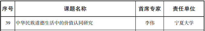 李伟教授作为首席专家申报的“中华民族道德生活中的价值认同研究”榜上有名。这是李伟教授继2013年作为首席专家获批国家社科基金重大项目“我国多民族道德生活史系列研究”之后,又一次获得国家社科基金重大项目立项。