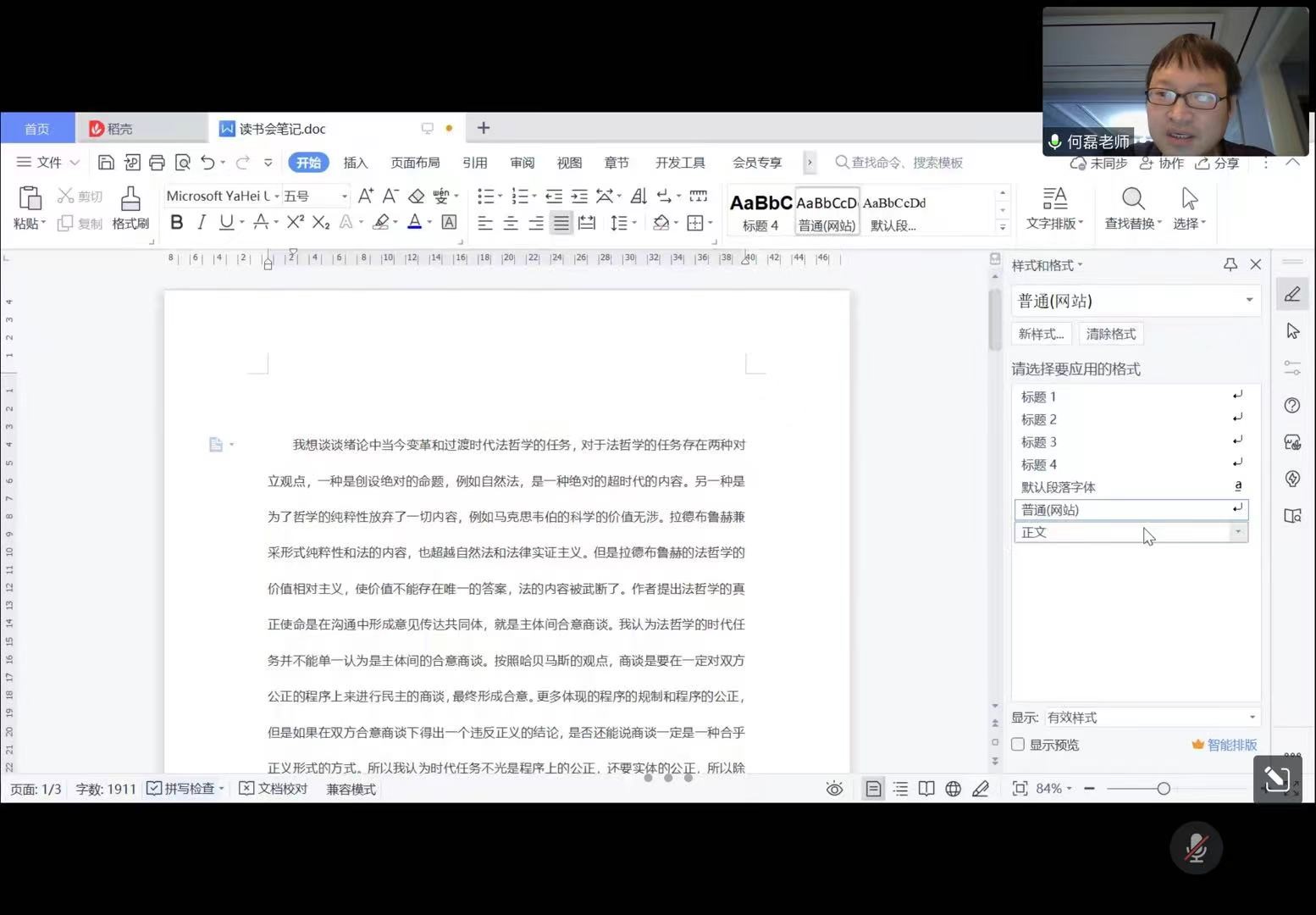 在报告人发言完毕后,几位点评人就马晗悦同学所作的报告从法哲学和法律理论角度发表自己的看法,并提出自己对本书的理解。唐浩玮认为法哲学和法学是平行关系,不存在隶属。马玉鹏认为由书本结合到现实,认为法哲学的相关理论能帮助我们培养宏大的法学世界观,为自己的知识储备增砖添瓦。牛佳提出哲学本体论、认识论和存在哲学这三个基本领域,在自己系统阅读之后发现这其实是指事物本源的三种不同的思维方式,而不是认识同一个事物的三个不同角度。徐博同学提出科学和哲学不能偏废,只注重科学而不注重哲学就会使科学没有清晰的指导思想。而只注重哲学,不注重科学,就会使哲学成为无源之水、无本之木,从而走向唯心主义。此外,他强调在平时生活中我们要警惕一些“无立场”论者以空洞说辞给人洗脑进行意识形态渗透的现象。我们应当坚定不移走中国特色社会主义道路,决不掉入西方这些貌似中立的理论的陷阱。