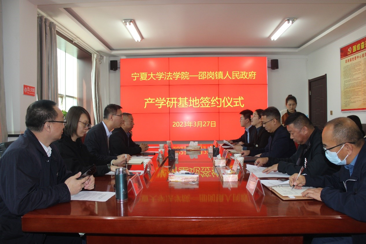 与邵岗镇人民政府在邵岗镇党委会议室举行战略合作签约仪式。双方共商在基层党建、国家安全、乡村振兴、社会治理、乡村文旅、智慧普法等课题上深入合作研究并建立工作站,共建“全域社会治理现代化”智库及大学生创新创业训练营,创新探索依法推进社会治理的有效路径,帮助邵岗镇走好具有邵岗特色的新时代乡村善治之路,以高质量法治服务保障邵岗镇经济社会高质量发展,构建全方位、多层次合作模式,推动校地双方良性互动发展,构建更加紧密的合作共同体。
