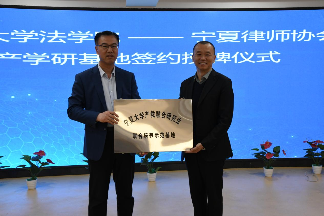 李治涛和刘建国代表双方签订合作协议并共同为宁夏律师协会产学研基地、英式21点