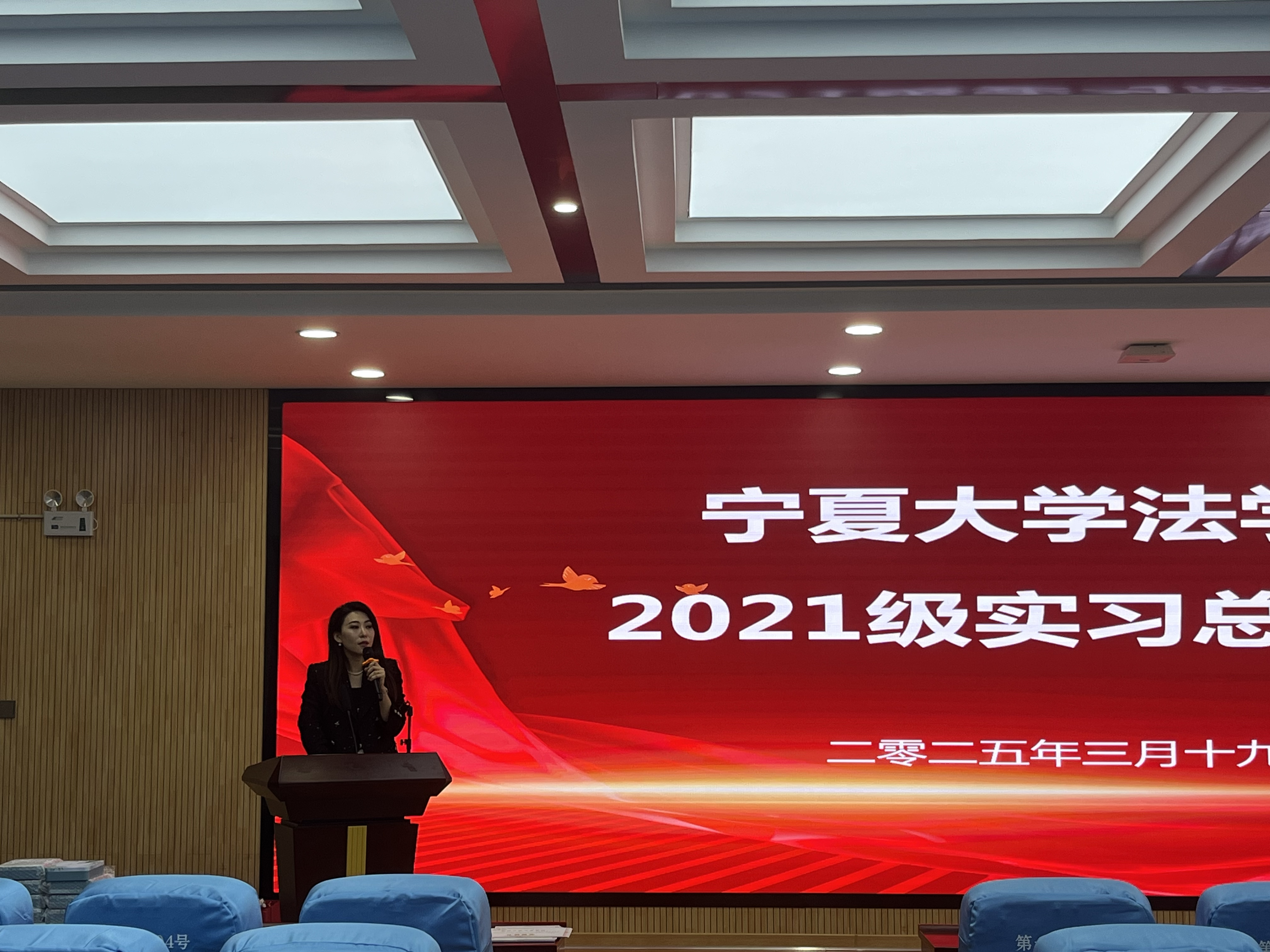 朱蓓予作为法学系的实习指导老师代表,充分肯定了此次实习工作取得的成绩,并针对法学系的实习生的实习表现和实习日常进行了点评,对法学专业的同学们风雨兼程积极完成实习工作表示了肯定,并对全体实习生提出了殷切期望,希望同学们认真总结实习经验。