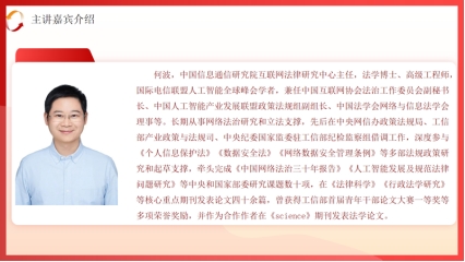 会议进行到第五项,庞冬梅老师介绍了首期“数字宁法”大讲堂嘉宾,中国信息通信研究院互联网法律研究中心主任何波博士。何波博士认为法英式21点