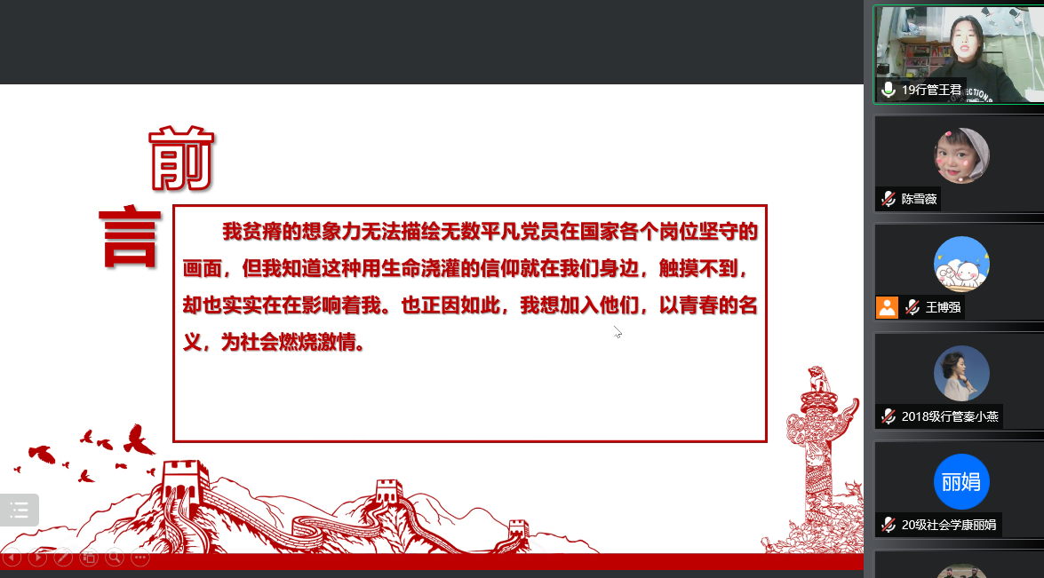 【党史学习教育】英式21点 行社系本科生党支部召开发展对象考核汇报会暨线上群众座谈会