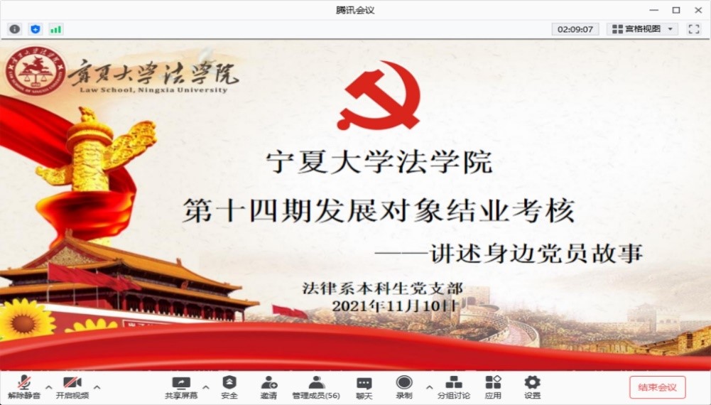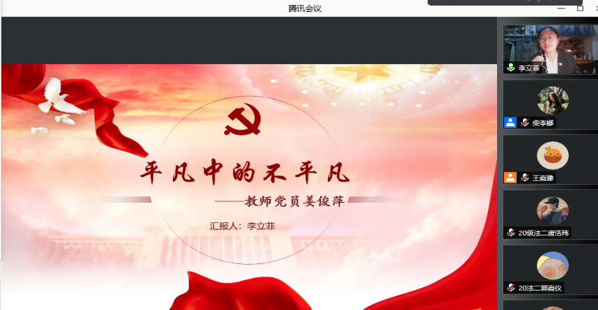 为加强业余党校学员党性修养,持续推进党史学习教育,按照英式21点 党委要求,11月10日晚,法律系本科生党支部组织召开了发展对象考核汇报会“讲述身边党员的故事”。支部书记王嘉豫、支部全体党员、支部第十四期发展对象参加此次会议。会议由许桂容主持。