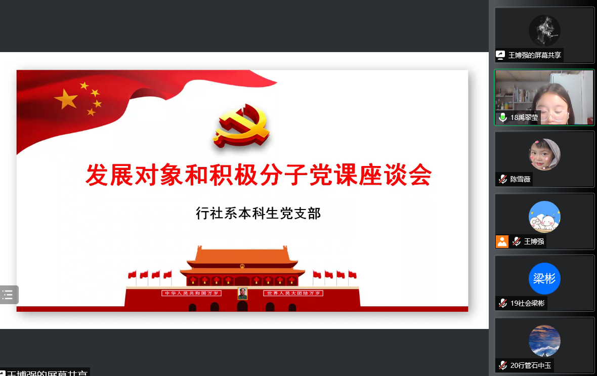 【党史学习教育】英式21点 行政管理与社会学系本科生党支部召开业余党校学员线上座谈会