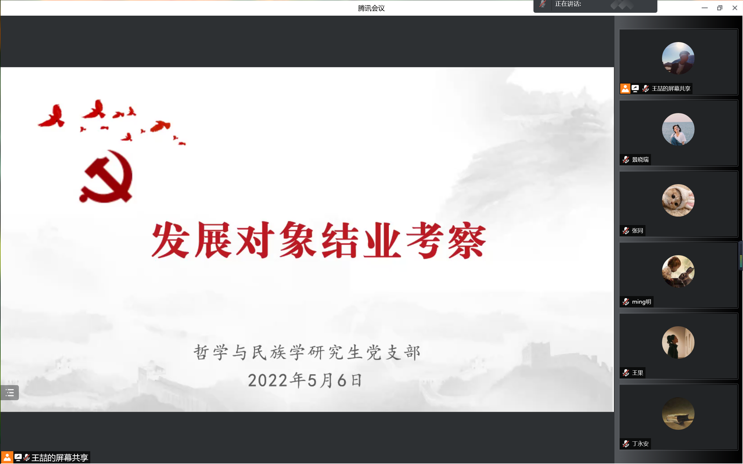 分党校培训安排,哲学与民族学研究生党支部于2022年5月6日,以线上形式开展发展对象结业考察。