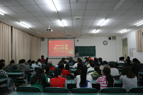 2017级各专业以团支部为单位在贺兰山校区文荟楼334、336教室召开“学习两会精神,紧跟时代潮流”主题团日活动。