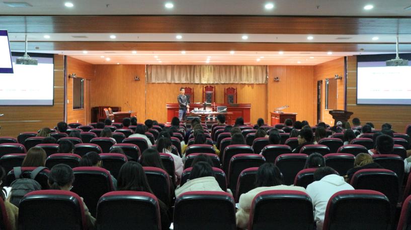 为使同学们对社会工作有初步了解,11月14日晚,院学生社团社工之家邀请了启辰社会工作服务机构的罗阳阳老师在模拟法庭为同学们作“社会工作经验交流”主题讲座,2019级部分学生参加了讲座。