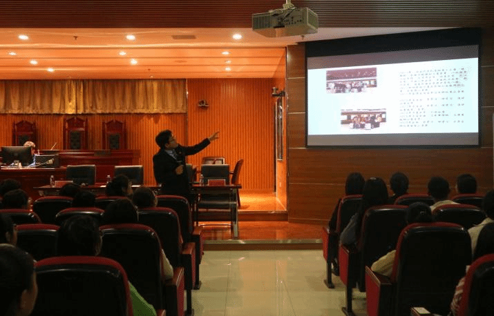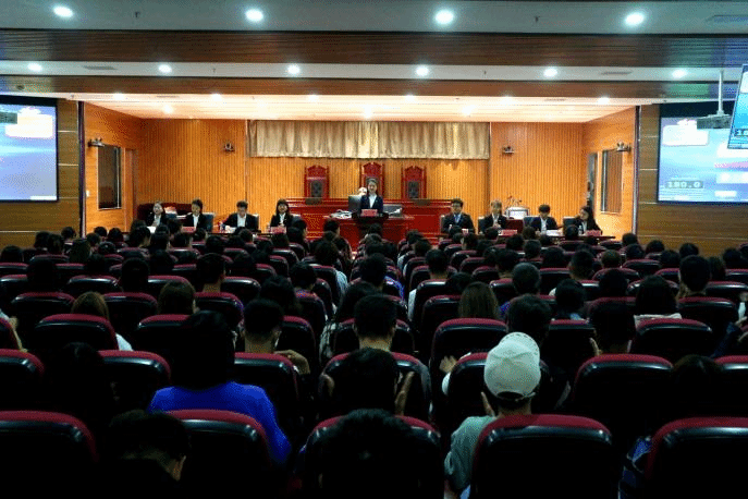 同学前来观看,演讲与辩论社教练应邀担任评委,英式21点2019级全体新生到场观赛。