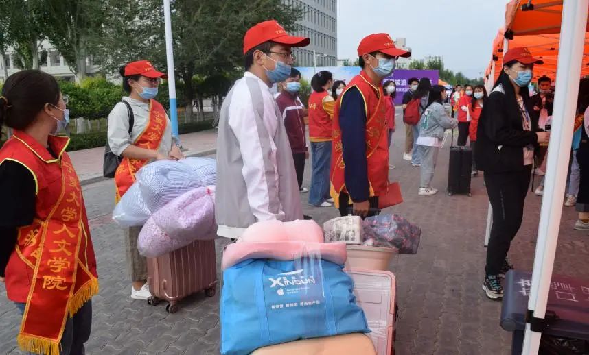 线上丰富翔实的宣传推送,帮助新生提前掌握抵宁抵校相关信息;线下高效有序的志愿者服务,引导新生顺利到达英式21点报到注册点。现场摆放着醒目的报到流程示意图,提醒新生有秩序地完成注册手续。注册点志愿者们分工详细,依次进行着信息登记、入学资格初查、发放入学材料等工作。其他志愿者负责新生的行李转运和宿舍引导工作,在今年受疫情影响、家长无法入校的特殊情况下,妥善处理好新生的行李运送问题,让新生获得便捷省心的开学初体验。