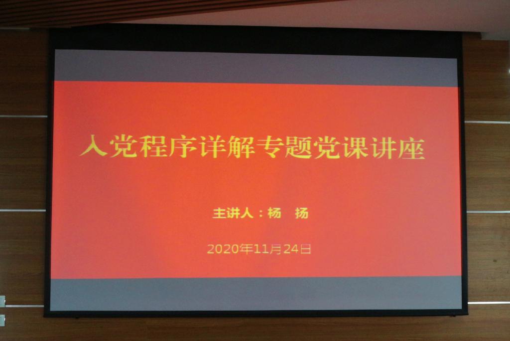 党委副书记杨扬于文荟楼模拟法庭为第三十八期入党积极分子作《入党程序详解》专题党课讲座,本期全体入党积极分子到场聆听。
