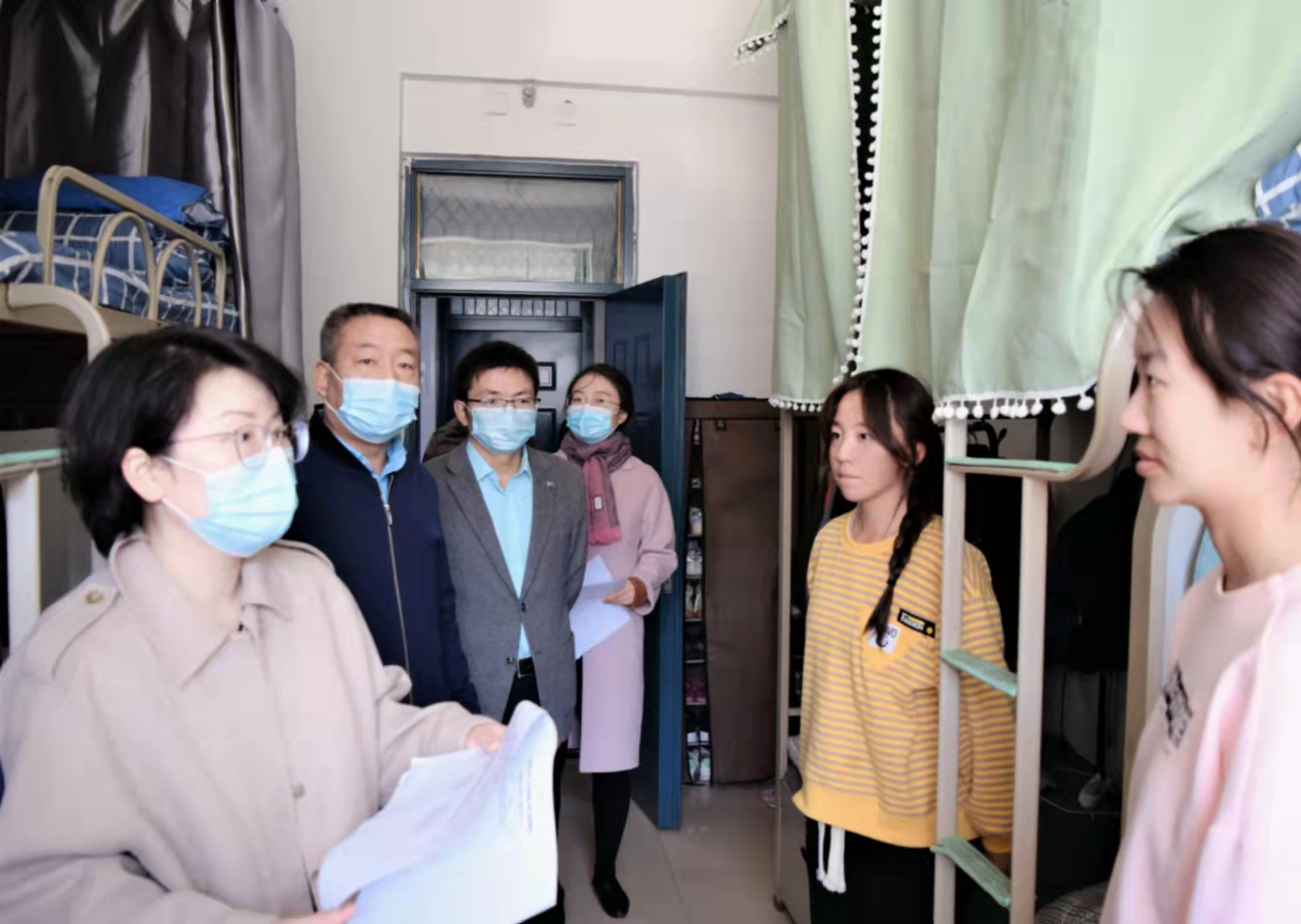 领导班子成员、学生工作办公室主任、辅导员,深入宿舍走访慰问英式21点学生,了解学生疫情防控期间的生活、学习状况。
