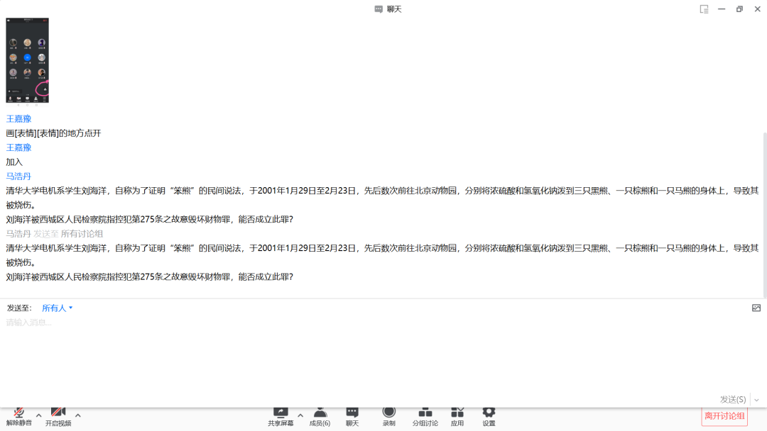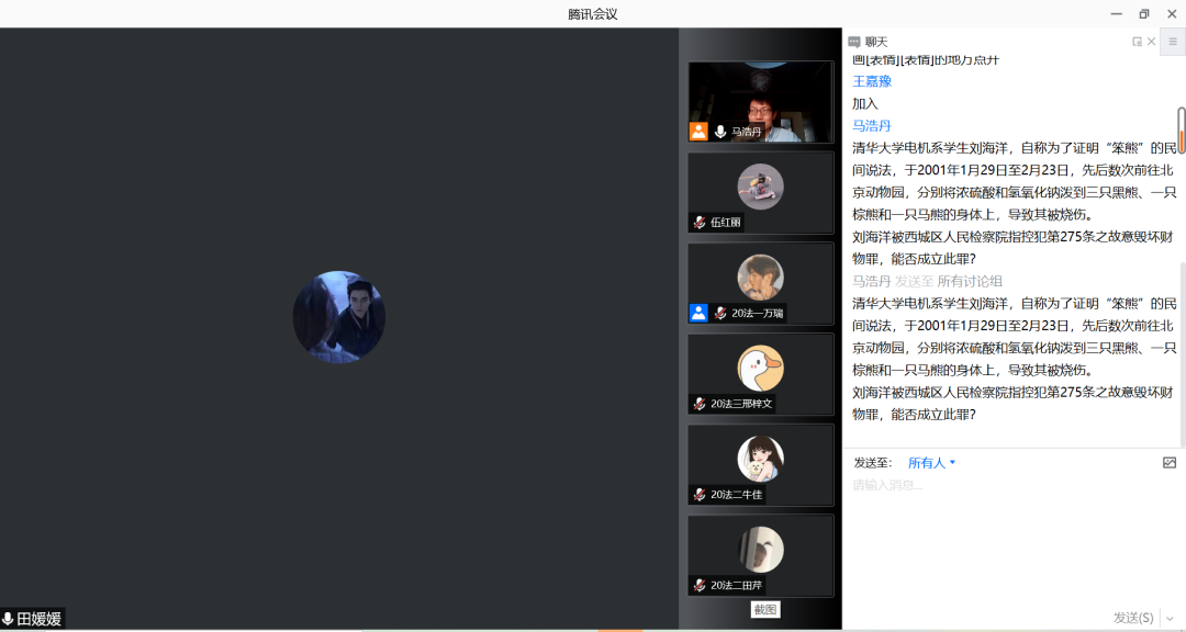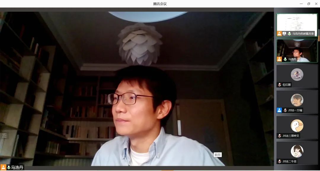 通过虚拟接待室的方式举办线上刑法案例研习活动。本次活动由马浩丹做主讲人,英式21点