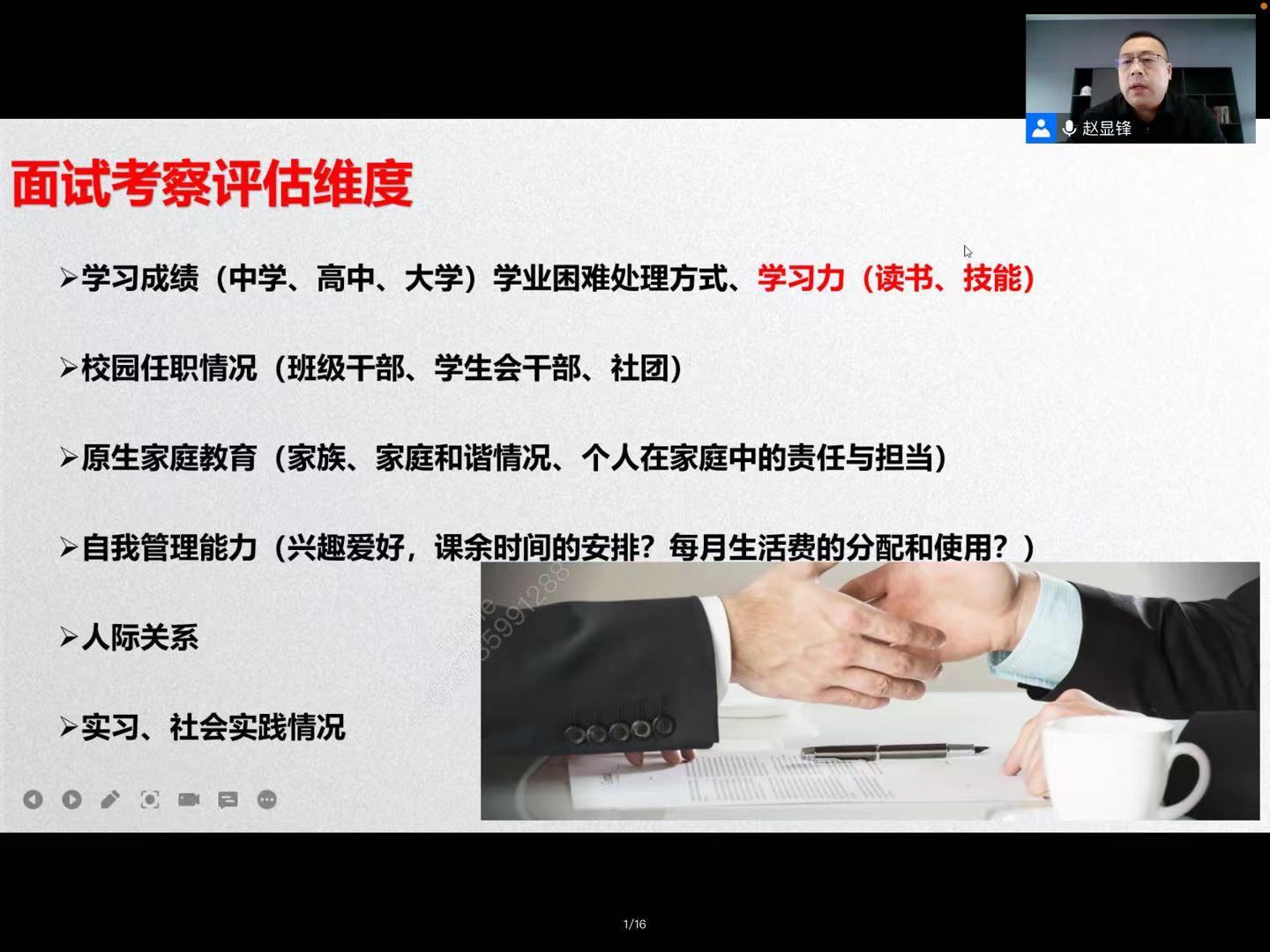 活动伊始,赵显锋从应届毕业生去向数据、应届毕业生意向企业类型、期望薪资和求职热门城市等多个方面分析了疫情状况下的就业形势。他指出,受疫情影响,目前企业提供的岗位数量减少,由此产生了大量待业人员,就业竞争激烈,求职难度大。随后,他从企业的角度出发,对大学生的培养提出几点建议。他分析了疫情过后企业急需的人才类型,并指明企业在招聘时除看中专业技能外,同样重视应聘人员的语言表达能力、沟通判断能力、数据分析与处理能力、线上办公系统操作能力和公文写作能力等等,这些都是毕业生在应聘时需要具备的重要技能。最后,赵显锋强调应当注重培养在职场中能长期提供价值的听说读写能力、逻辑能力、自主学习能力,有助于提高应届毕业生的求职竞争力。