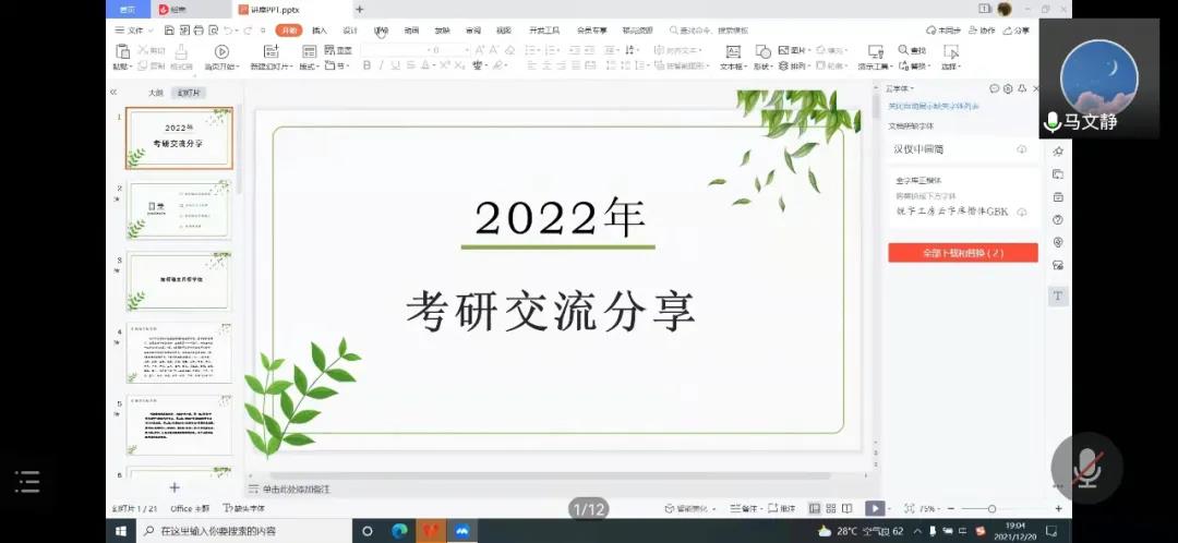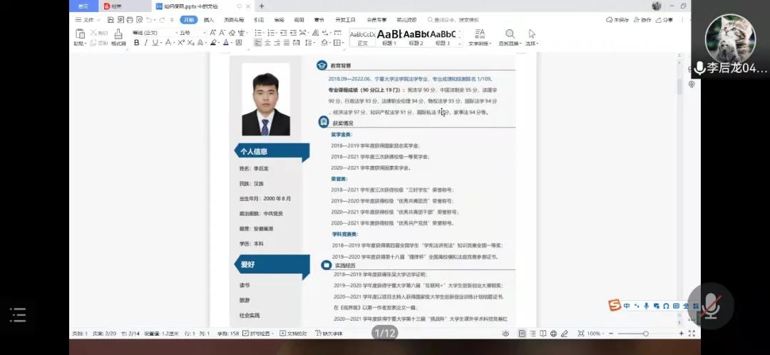 于12月20日晚以线上形式举办了“感恩•励志•成才”主题优秀学生事迹宣讲会,2021级法学专业研究生马文静、2018级法学专业本科生李后龙分享个人先进事迹,并交流考研保研经验,英式21点