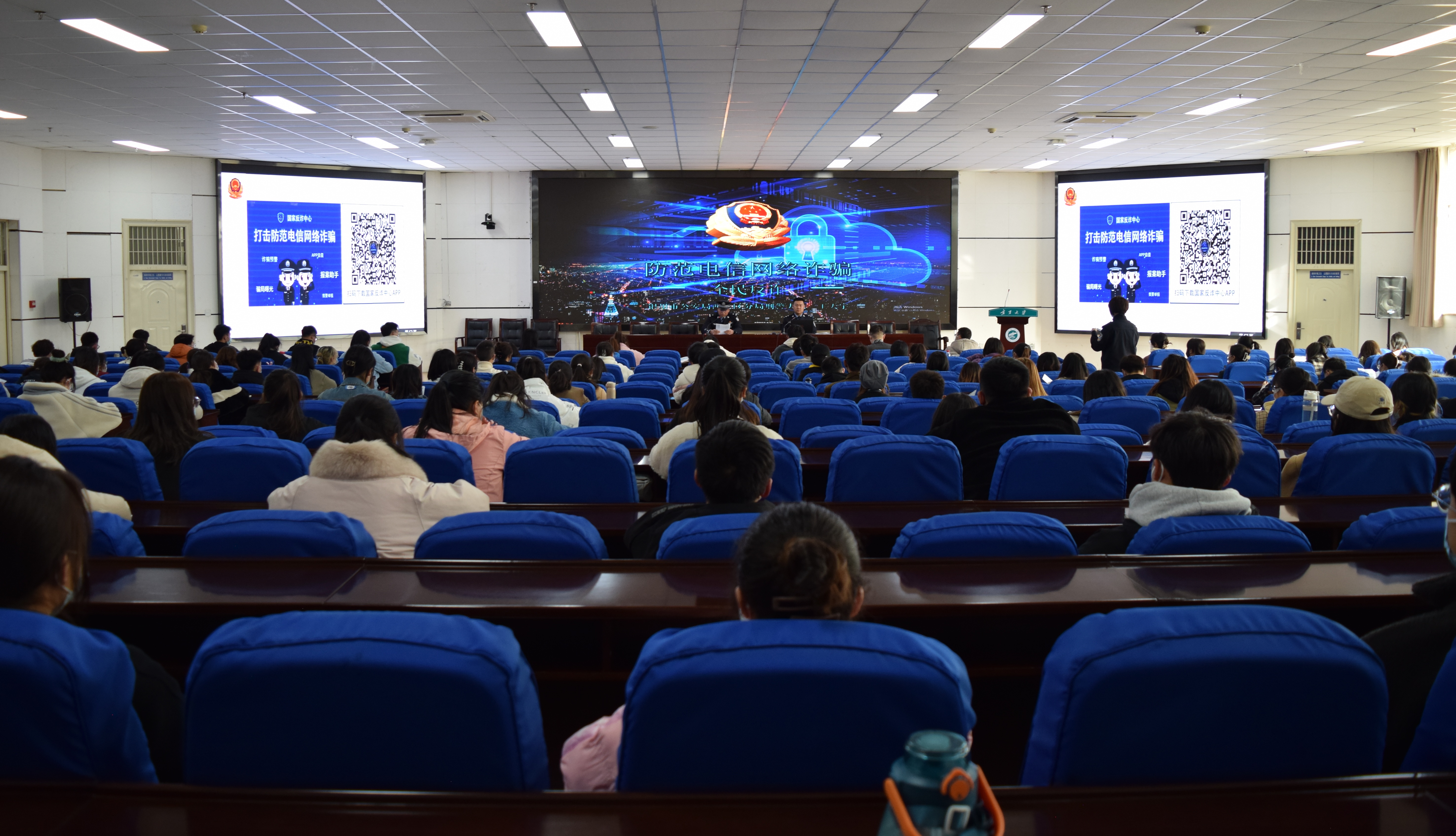 与辖区公安机关共同组织开展的“校园防范电信网络诈骗”专题讲座。此次讲座由西夏区公安分局刑警大队杨警官和王警官主讲。
