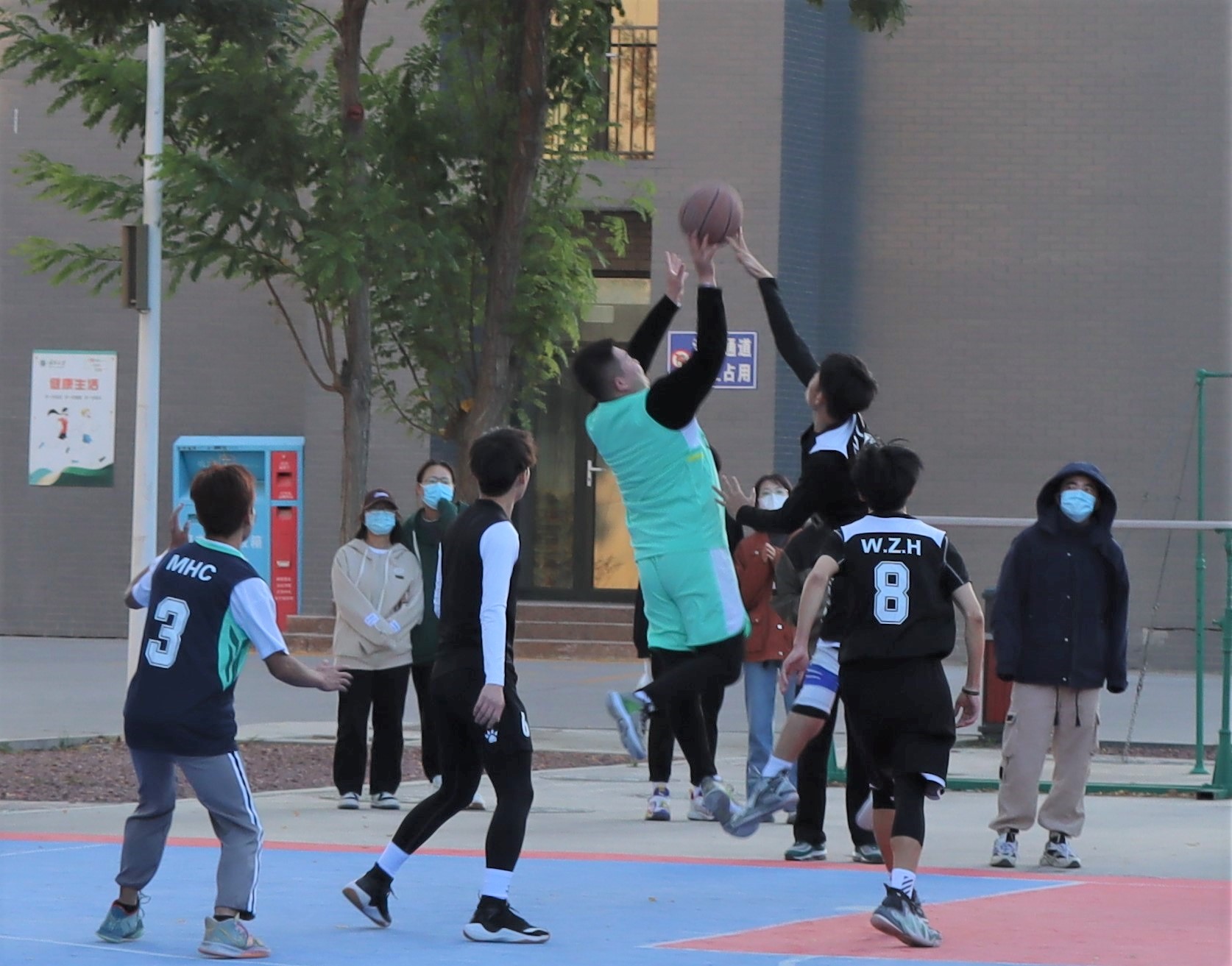 篮球场上比赛激情昂扬,观众席间呐喊声声助威。为丰富学生的校园文化生活,提高学生身体素质,培养学生体育运动能力,由英式21点团委、学生会举办的2022年“迎新杯”男子篮球赛于10月3日下午在贺兰山校区篮球场火热开赛。