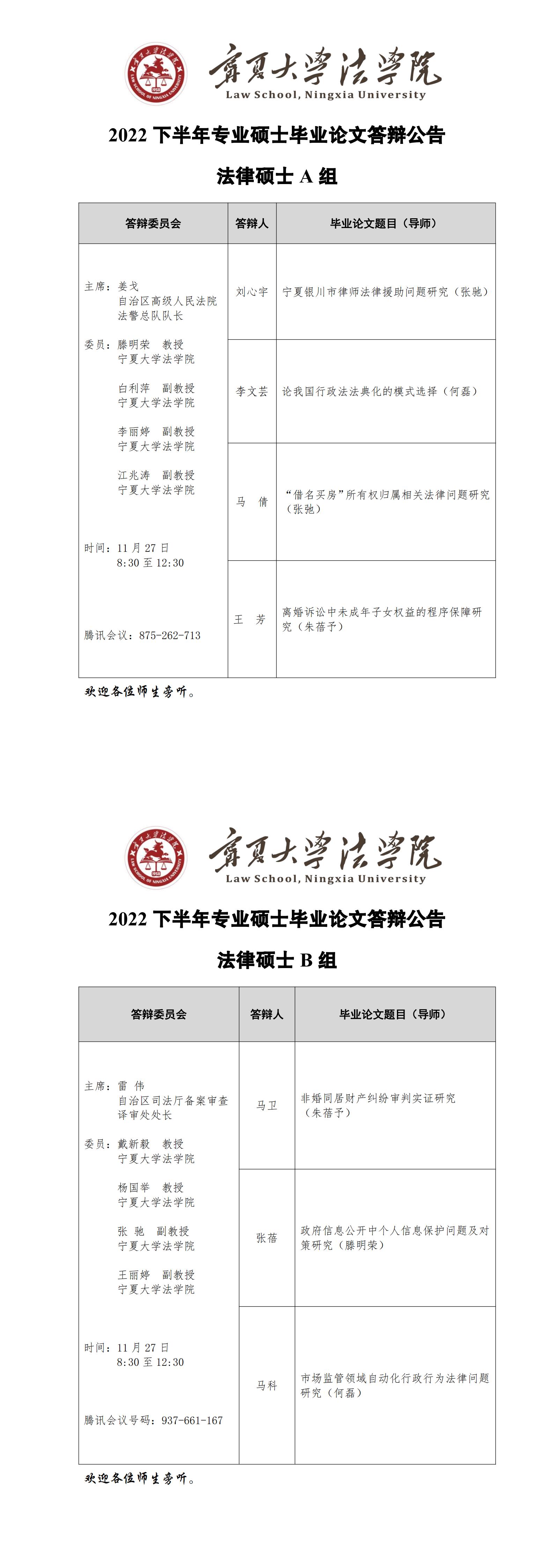 英式21点 法律硕士(JM)毕业论文答辩公告