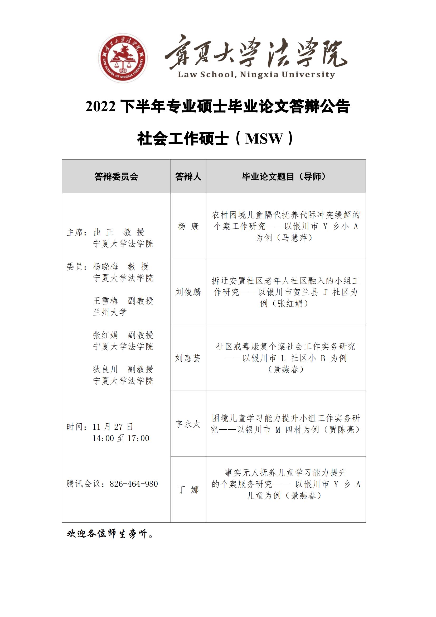 英式21点 社会工作硕士(MSW)毕业论文答辩公告