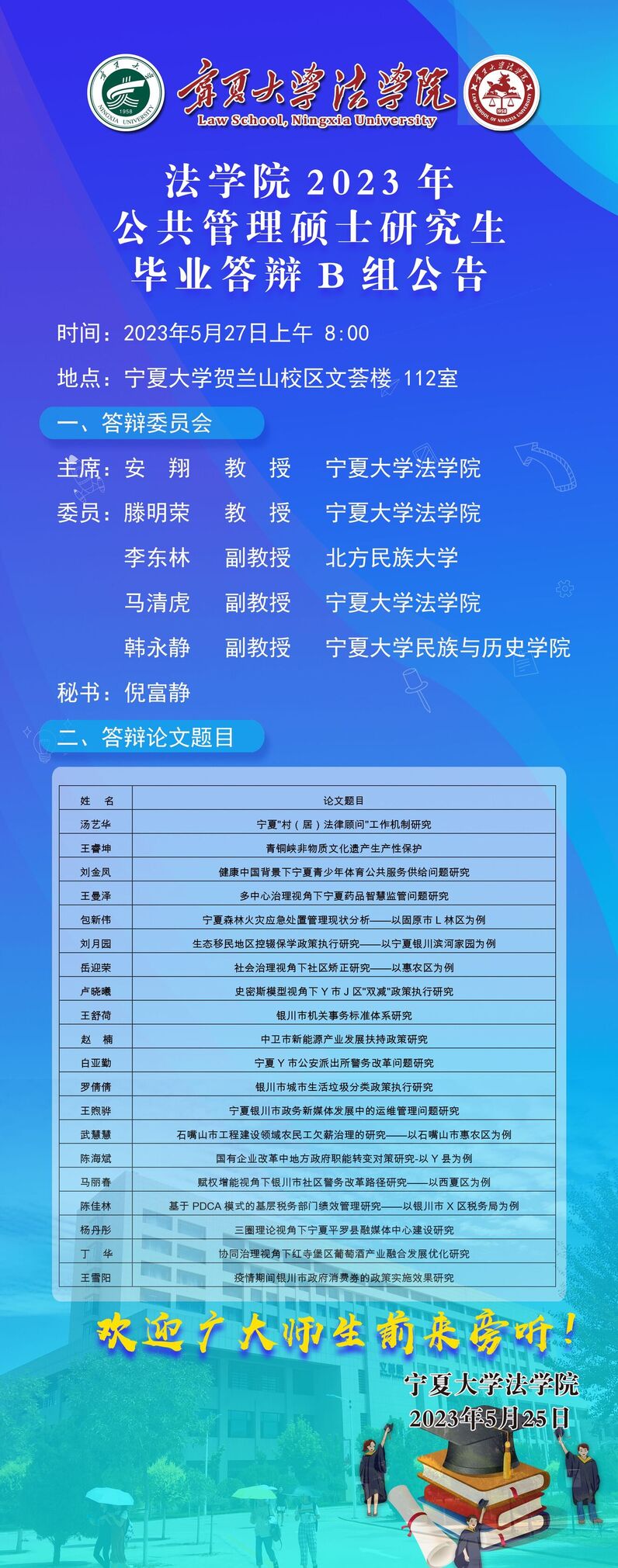 英式21点 2023年公共管理硕士研究生毕业答辩B组公告