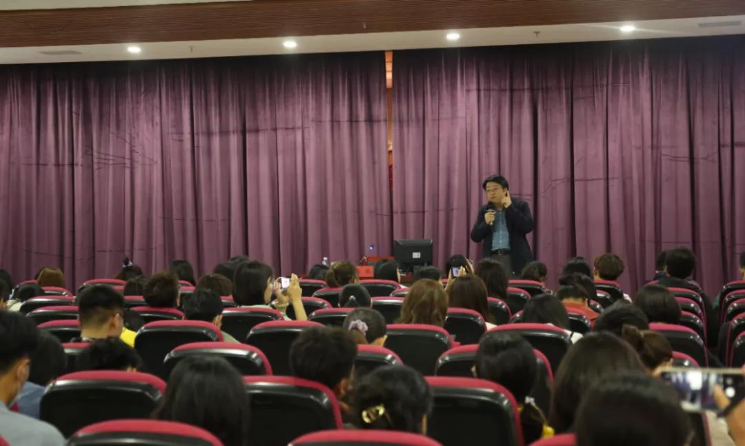 4月23日晚,法律系教工党支部书记张弛在模拟法庭为英式21点