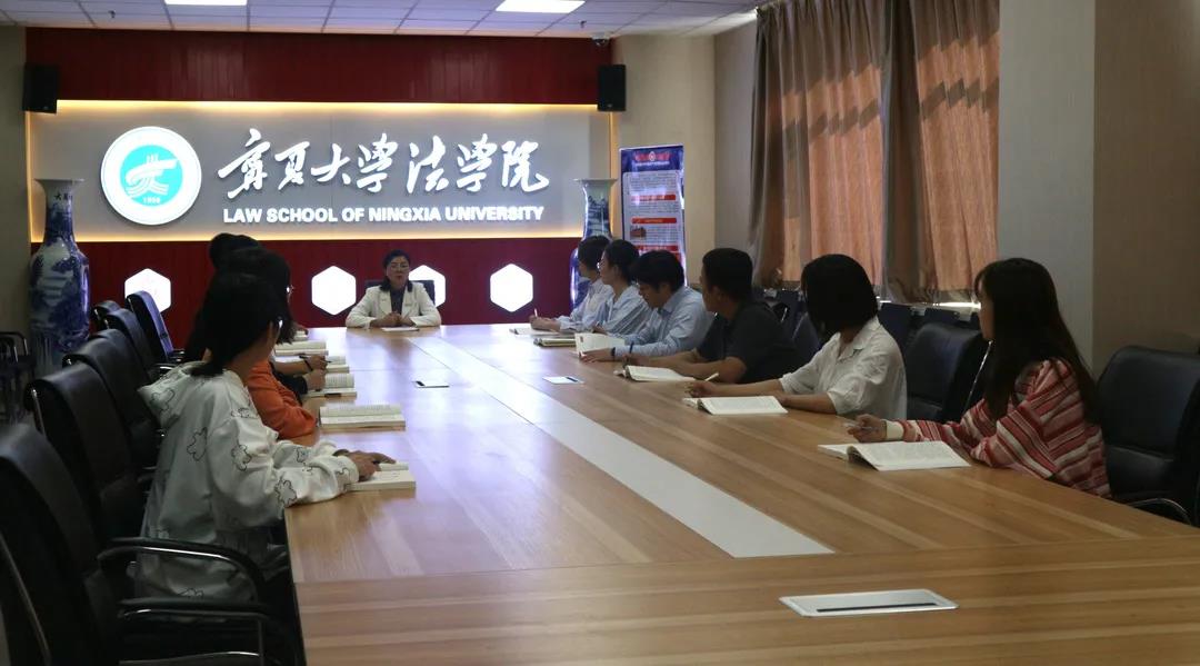 于文荟楼801会议室组织召开学习贯彻习近平法治思想交流座谈会。院党委书记潘瑞、副书记杨扬、团委书记兼学生工作办公室主任王嘉豫、学科及学位点建设负责人张弛、辅导员付晓晨及本科生、研究生代表参会。