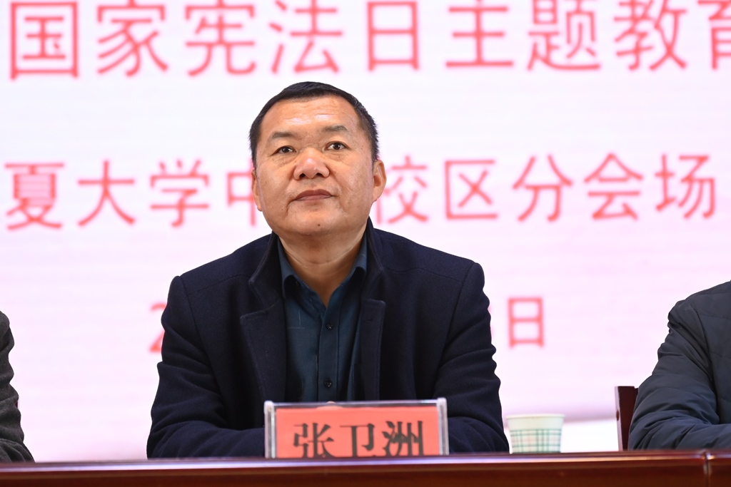 在宪法宣传日,以大学生为对象,宣讲习近平法治思想;以中小学师生为对象,普及《中华人民共和国未成年人保护法》,大力营造全社会关爱保护未成年人健康成长的浓厚氛围,协助中卫市进一步增强社会主义法治文化建设和法治校园建设,让法治宣传教育在基层强起来、实起来、暖起来。