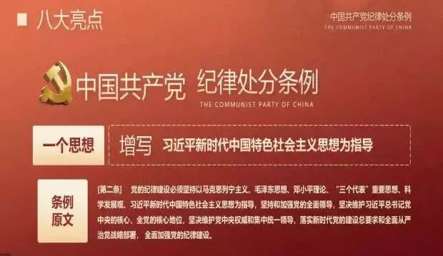 《中国共产党纪律处分条例》是关于党的纪律建设的基础性法规。是党中央站在新的历史起点上,适应新时代党的建设总要求,对全面从严治党、加强纪律建设,再部署,再动员。