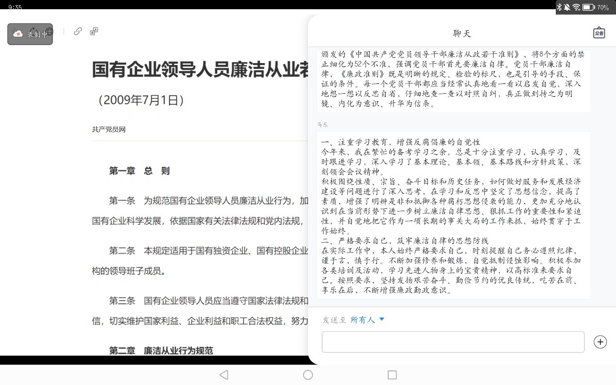 关于国有企业的领导人员廉洁从业若干规定,刘龙震也进行了领学。国企作为中国的经济支柱,待遇较为优厚,这也导致国有企业的领导人员面临更大风险。在这种情况下,国企领导人员廉洁从业的若干规定十分必要且非常重要。